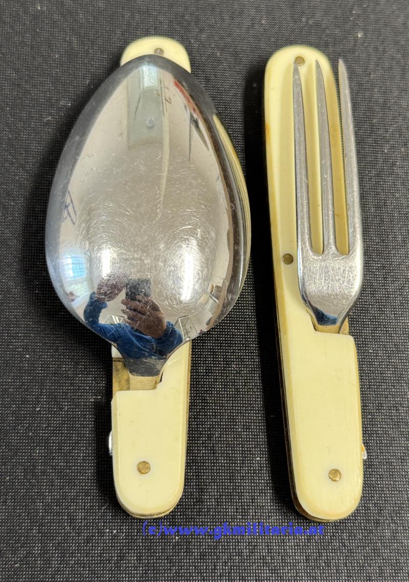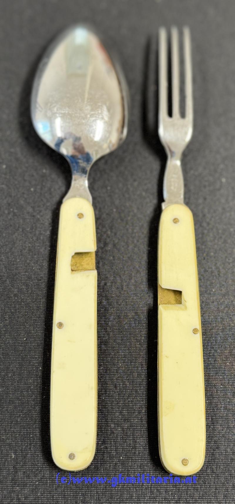 Essbesteck für k.u.k. Offiziere! - Löffel u. Gabel!! - privat beschafft - Griffe aus Bein - zum Ausklappen solch ein ähnliches ist im Buch Des Kaiser´s Rock auf Seite 488 zu finden - sehr guter Zustand!