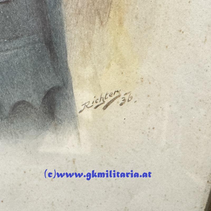 Portrait Fähnrich "VOLKSWEHR" !! - Aquarell - signiert Richter 1936 - alter Rahmen - Format: Rahmen: 37x28cm Bildausschnitt: 31x22cm - sehr guter Zustand!