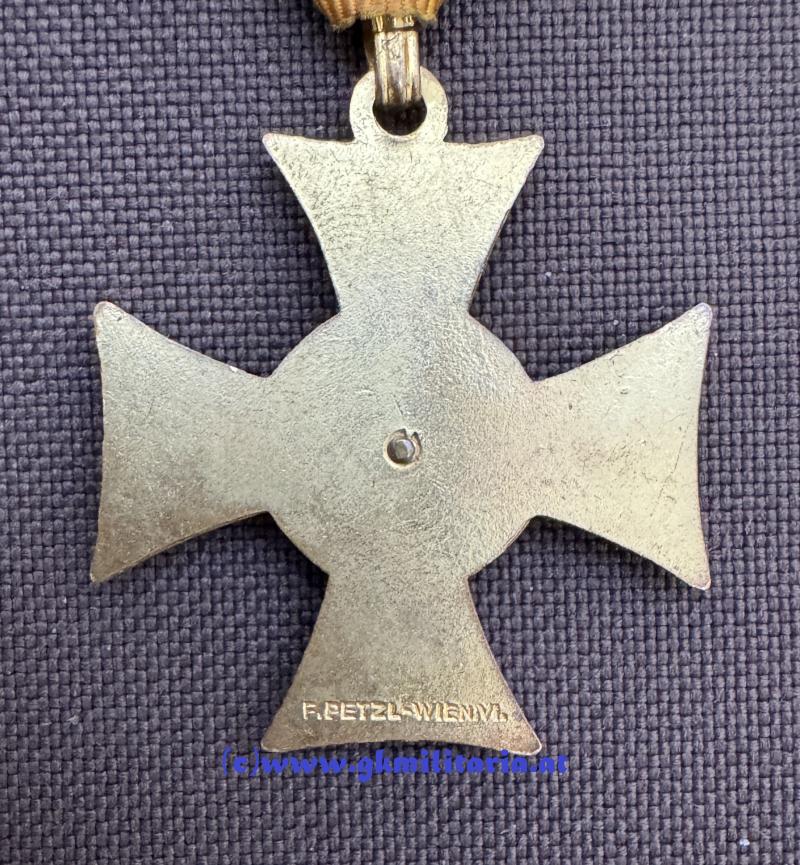 Militärdienstzeichen 25 Jahre 2. Klasse für Offiziere - 1. Republik! - vergoldet - Mittelmedaillon versilbert - mehrteilig gefertigt - auf Rückseite Hersteller Petzl, Wien - am originalem Band - sehr guter Zustand! - Selten!