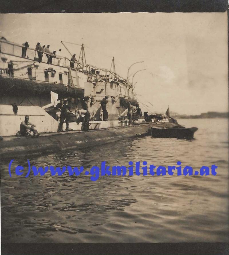 k.u.k. Fotonachlass eines U-Bootfahrers der k.u.k. Kriegsmarine - bestehend aus 12x Foto darunter: 1x Portrait Matrose S.M.-Unterseeboot V. mit U-Bootabzeichen und Orden - 7x Foto mit S.M-Unterseeboot - 4x Foto von versenkten Schiffen im Mittelmeer - 1x PK-Format - 1x 12x8,2cm - 4x ca. 10x9cm - 6x ca. 9x6,2cm - tolles Zeitdokument eines österr.-ungarischen U-Bootmannes!! - Fotos im gebrauchtem Zustand!