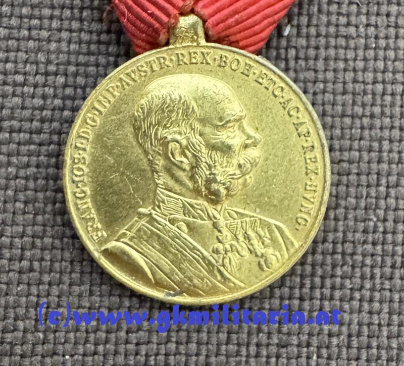 k.u.k. Signum Memoriae - Miniatur am Dreiecksband! - Bronze vergoldet - am originalem Dreiecksband für Miniaturen - sehr guter Zustand! - selten!