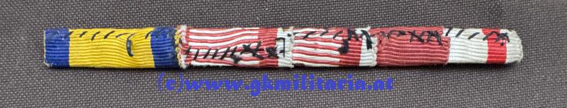 k.u.k. 5-teilige Bandspange "Eiserne Krone Orden" !! - bestehend aus: Eiserne Krone - MVK oder Silb. MVM - Bronzene MVM - Signum Memoraie - Jubiläumskreuz - auf Rückseite Klammer zum Einhängen 1 Stück fehlt - guter Zustand!
