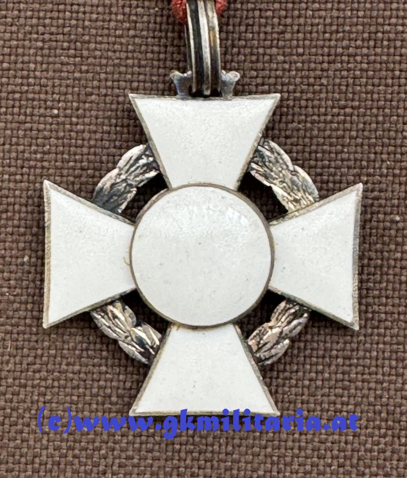 k.u.k. Militärverdienstkreuz 3. Klasse mit KD!! - Silber punziert Dianakopfpunze und Herstellerpunze VM für Vinzenz Mayer, Wien - vernäht am originalem Band (Klammer fehlt auf Rückseite) mit Schwertern - sehr guter Zustand!