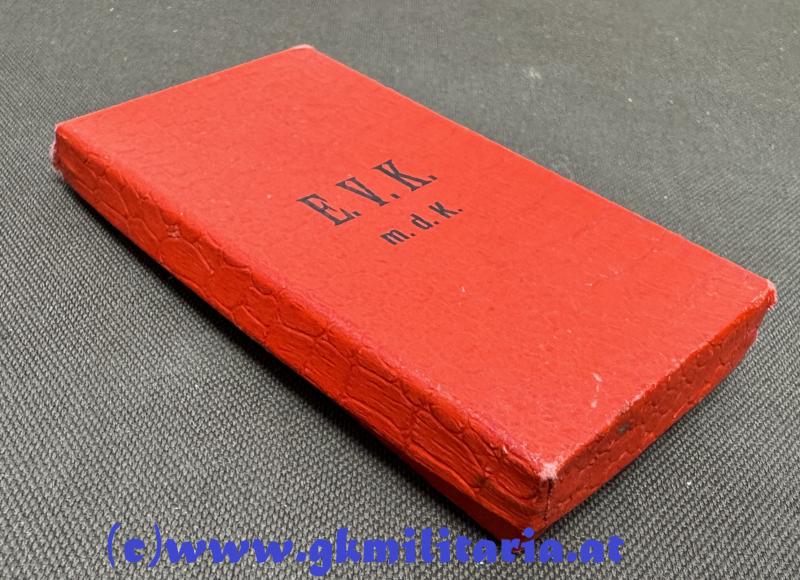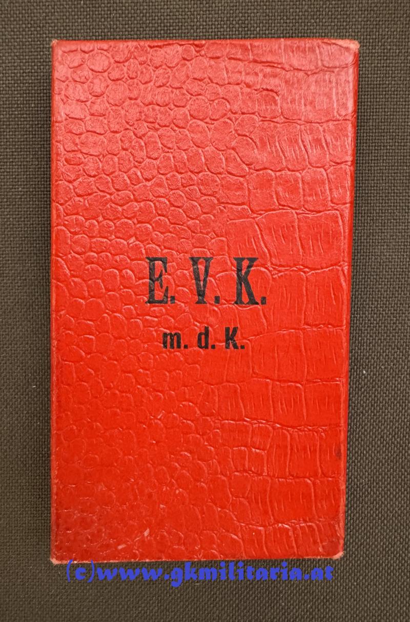 k.u.k. Eisernes Verdienstkreuz im Etui! - ZIMBLER, WIEN! - TOP!! - Eisen magnetisch - am originalem Band - im originalem Kartonetui der Fa. ZIMBLER Wien - Vorderseite Aufdruck E.V.K. m.d.K. - auf Rückseite Herstellerstempel ZIMBLER, Wien k.u.k. Hoflieferant - TOP-Zustand!