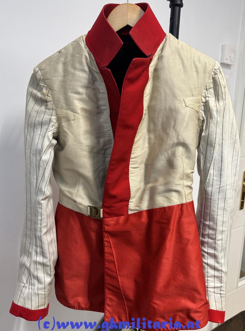 k.u.k. Rock Leutnant Artillerie Rudolf Kainz k.u.k. Feldartillerieregiment Nr. 36!! - Uniformrock für den Leutnant Rudolf Kainz der k.u.k. Artillerie - Feldartillerieregiment Nr. 36 - Träger der Silbernen und Bronzenen Militärverdienstmedaille beide mit Schwertern und Karl Truppenkreuz !! - dunkelbraunes feines Tuch mit Stehkragen - Ärmelaufschläge und Vorstöße aus scharlachrotem Tuch - am Kragen je 1 original vernähter goldener Stern für Offiziere - einreihig zu 6 goldenen Knöpfen mit Artillerie-Design - auf der linken Schulter goldene Achselschlinge - innen der Oberteil mit weißer und der Schoßteil mit roter Futterseide ausgelegt - Herstelleretikett W. Beck Wien k.u.k. Hoflieferant - in der Brusttasche original vernähtes Trägeretikett Richard Kainz im Schematismus 1918 unter Rudolf Kainz k.u.k. Feldartillerieregiment 36 ab 1918 vormals k.u.k. Feldkanonenregiment 36 - sehr guter, farbfrischer Zustand!