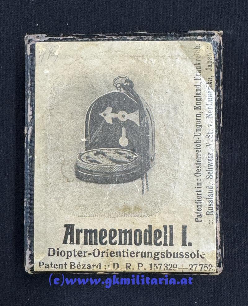 Armee-Kompaß I.WK - Armeemodell I - Patent Bezard !! - kleine Ausführung - mit Ledertasche und originaler Schachtel (diese etwas beschädigt) - sonst sehr guter gebrauchter Zustand!