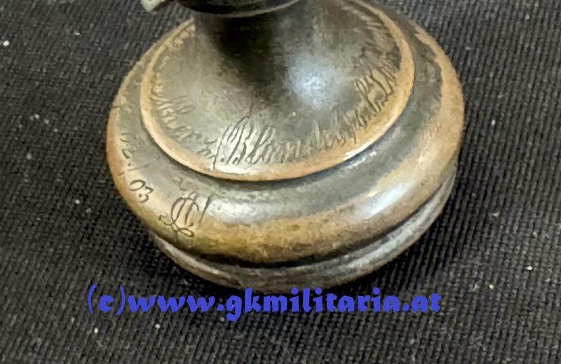 Petschaft mit Büste "Otto von Bismarck" !! - Büste könnte aus Silber sein - Petschaft unten aus Bronze mit Initialen GO und Geschenk-Inschrift z. fr. E. W.S. 02./03 = zur freundlichen Erinnerung W.S. Februar 1903 und weiter oben Lebherz (Blondel) s. l. Lbb. Camuzzi (Scaevola) - Scaevola = Scaevola ist das Cognomen eines Zweigs der alten römischen plebejischen gens Mucia. Der Name bedeutet Linkshand. Er rührt von dem Volkshelden Gaius Mucius Scaevola her, welcher der Sage nach im Jahre 508 v. Chr. seine rechte Hand bei dem fehlgeschlagenen Versuch opferte, den Etruskerkönig Lars Porsenna zu ermorden.