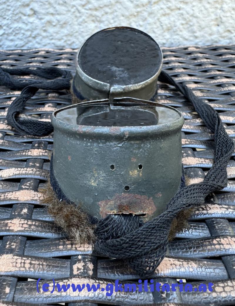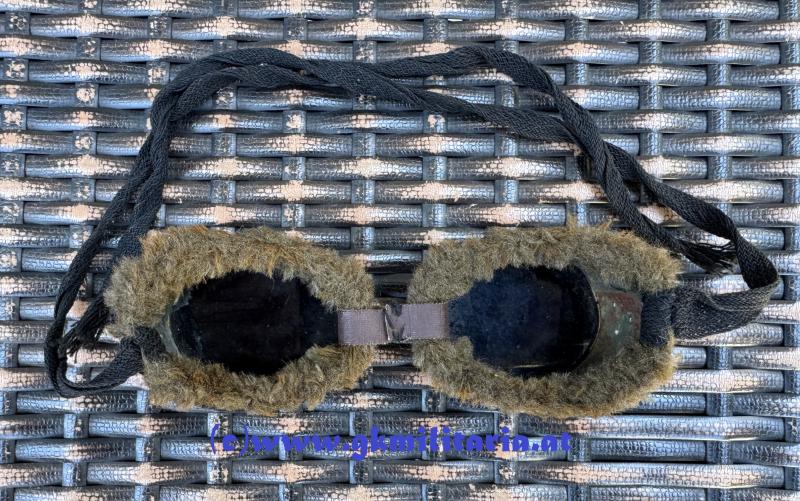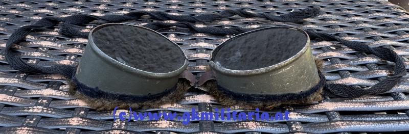 k.u.k. Schneebrille für Hochgebirgstruppe! - feldgrau lackiertes Eisenblech mit eingesetzten grünen Gläsern - Rahmen mit weichem Kunstfell - Mittelriemen aus Lederimitat (Ersatzmaterial) - schwarze Leinenbänder zur Befestigung - diese Brille ist im Buch "Die k.k. Landwehr-Gebirgstruppen" von Stefan Rest Militaria Verlag auf Seite 257 zu sehen - sehr guter gebrauchter Zustand !!