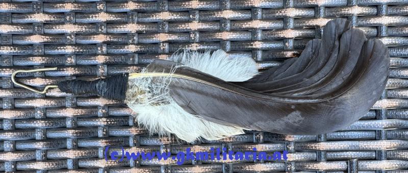 k.u.k. Spielhahnstoß! - Spielhahnstoß - wie von der k.u.k. Armee bzw. später auch von Heimwehren und Gebirgstruppen des Bundesstaates getragen - Halteklammer aus Metall - längere Ausführung - guter getragener Zustand!