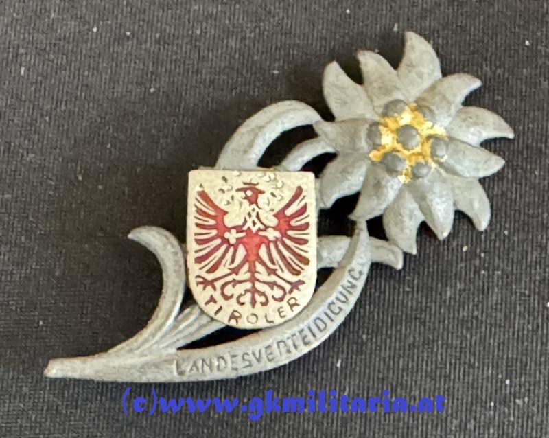 k.u.k. Kappenabzeichen "TIROLER LANDESVERTEIDIGUNG" !! - Kriegsmetall - teilweise emailliert (Chip im Kranz) - originales Nadelsystem - guter gebrauchter Zustand!