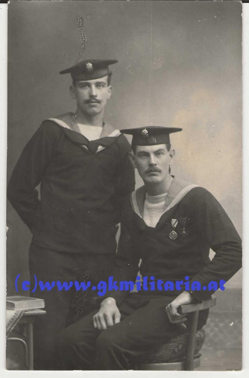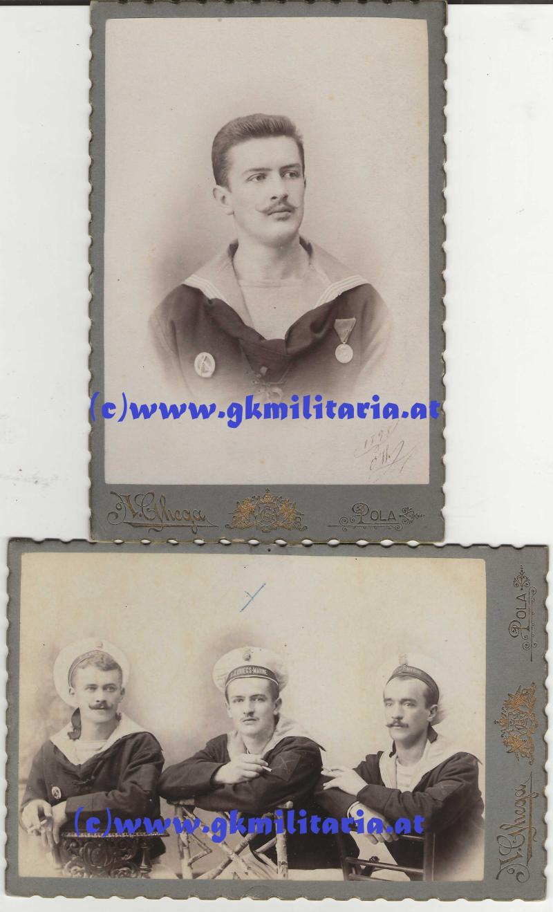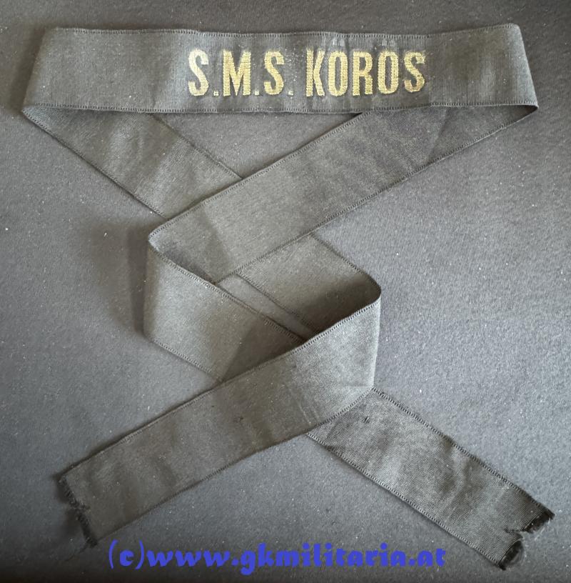 Mützenband S.M.S. Körös - seltenes Band eines Donaumonitors für Mannschaften und Unteroffiziere - schwarzes Band mit Goldstickerei - Länge: 95,5cm - sehr guter Zustand! - KAB-Foto von Otto Heide als Unteroffizier auf dem Donaumonitor S.M.S. KÖRÖS - gr. KAB-Foto als Uoffz. mit seiner Gattin 1912 - Portrait im AK-Format Otto Heide als Uffz. S.M.S. REKA und anderer Matrose von der S.M.S. Franz Ferdinand - 2x KAB Foto Pola 1895 mit Mützenband k.u.k. Kriegsmarine - 2x CDV-Foto (1 auf RS beschrieben Pola 13.8.1897 Otto - 1x Visitenkarte Ottokar Heide k.u.k. Marine-Unteroffizier 3.4.1900 - Brief an den Uoffz. Otto Heide aus Odessa vom 24.3.1912 (Reco-Brief) - seltener Kriegsmarinenachlass eines Uoffz. der auf dem Donaumonitor S.M.S. Körös diente im sehr guten Zustand! - S.M.S. KÖRÖS hatte nur 77 Mann Besatzung Offiziere u. Mannschaften!