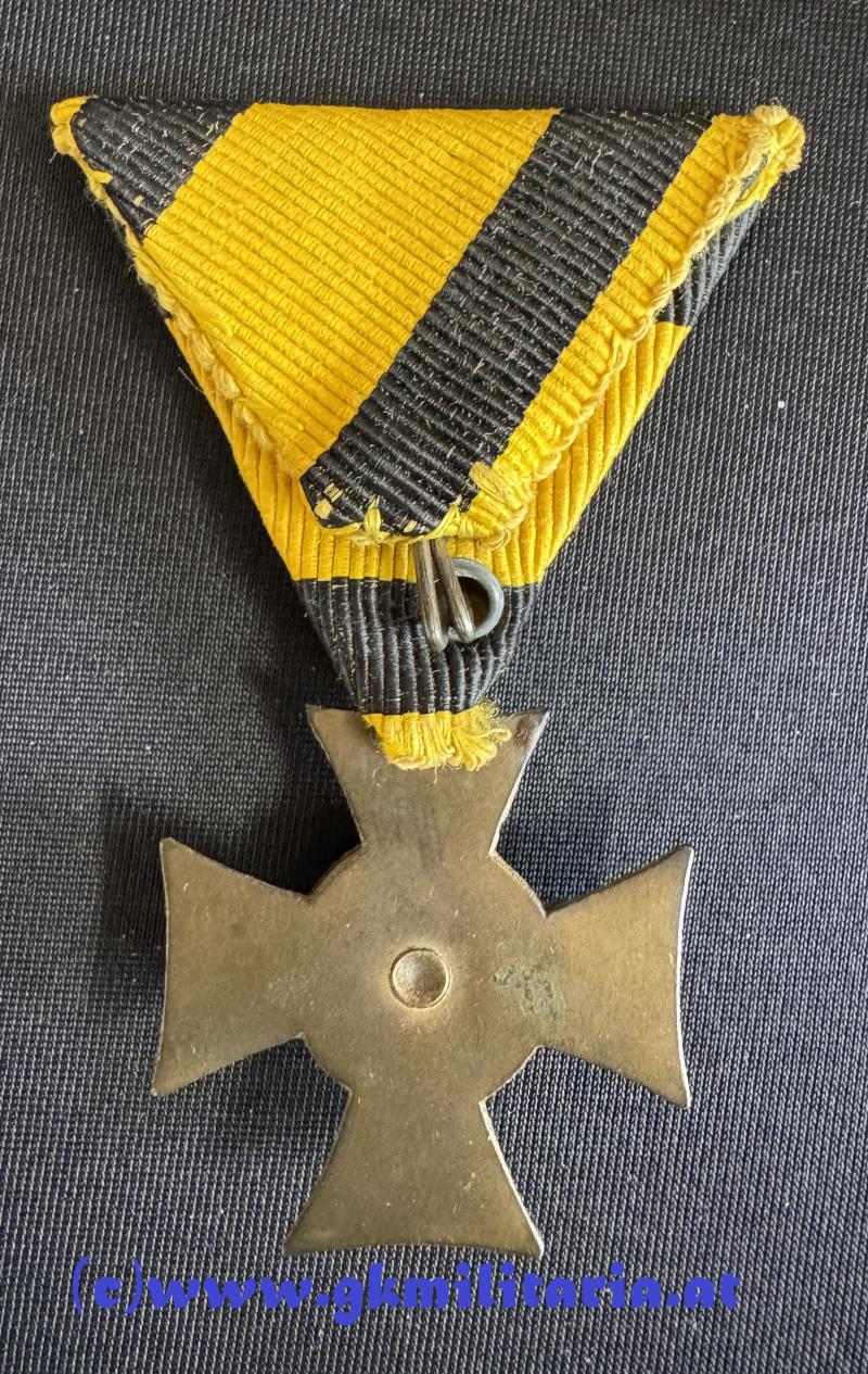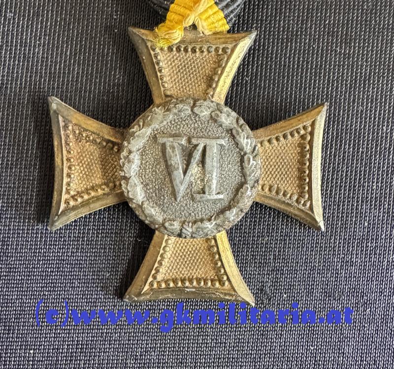 k.u.k. Militärdienstzeichen Mannschaft/Uoffz. VI Jahre! - Bronze - zweiteilig gefertigt Mittelmedaillon mit Lorbeerkranz - am Originalem Dreiecksband! - guter getragener Zustand!
