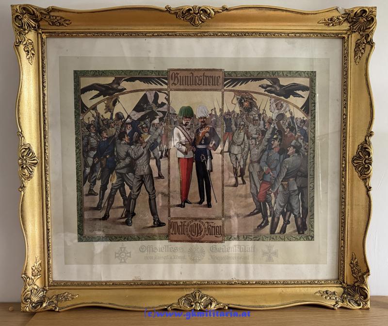 "Bundestreue Weltkrieg 1914" - Offizielles Gedenkblatt vom k.u.k. Kriegsfürsorgeamt! - gerahmt - Rahmen 68x58cm (1 Beschädigung) - guter Zustand! read more
