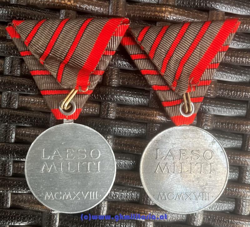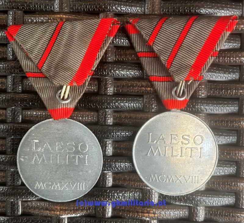 6er Satz Verwundetenmedaille Kaiser Karl I. - MINT! - bestehend aus: 1-malige, 2-malige, 3-malige, 4-malige, 5-malige Verwundung und der Medaille für Invaliden - alle Medaillen Kriegsmetall - Stempelschneider PLACHT - aus größeren Hortfund - auf originalen Bändern! - Zustand MINT!