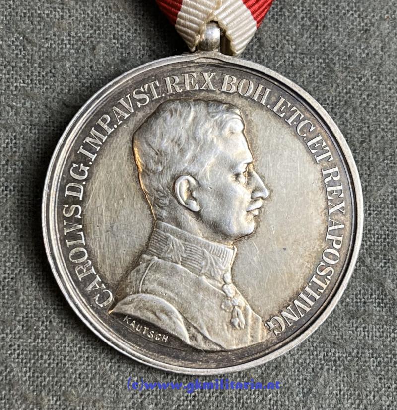 k.u.k. Tapferkeitsmedaille Silber 1. Klasse Kaiser Karl I. - TOP! - Stempelschneider Kautsch - Silber "A" punziert im Rand Kontrollamtspunze Hauptmünzamt Wien - am originalem Band - TOP-Zustand!