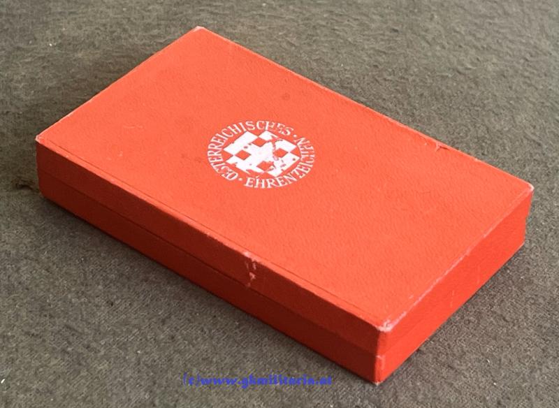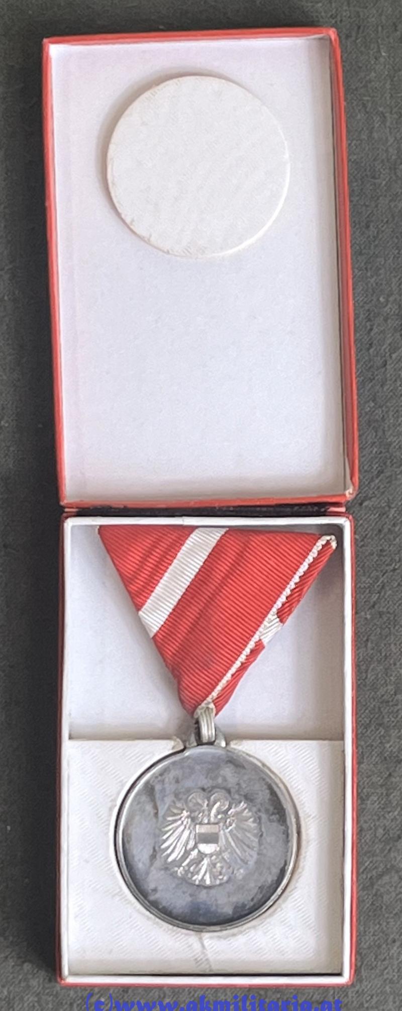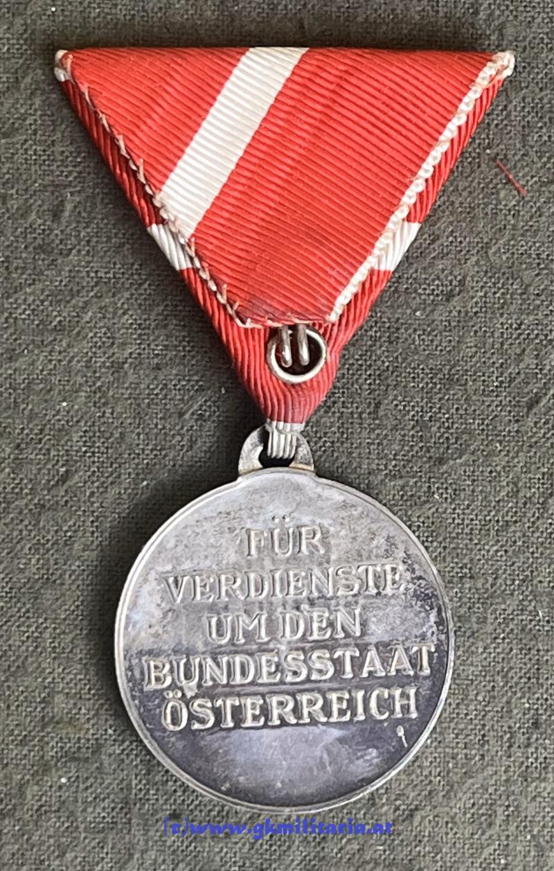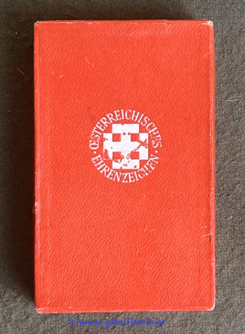 Österreich Bundesstaat - Kleine Silberne Medaille für Verdienste im Etui! - versilbert - am originalem Band - im originalem roten Karton-Etui mit weißem Aufdruck auf Vorderseite Österreichisches Ehrenzeichen und ein Kruckenkreuz - sehr guter gebrauchter Zustand!