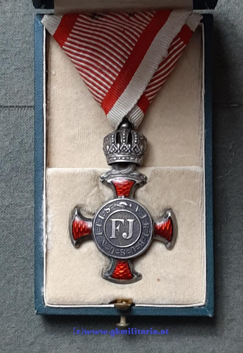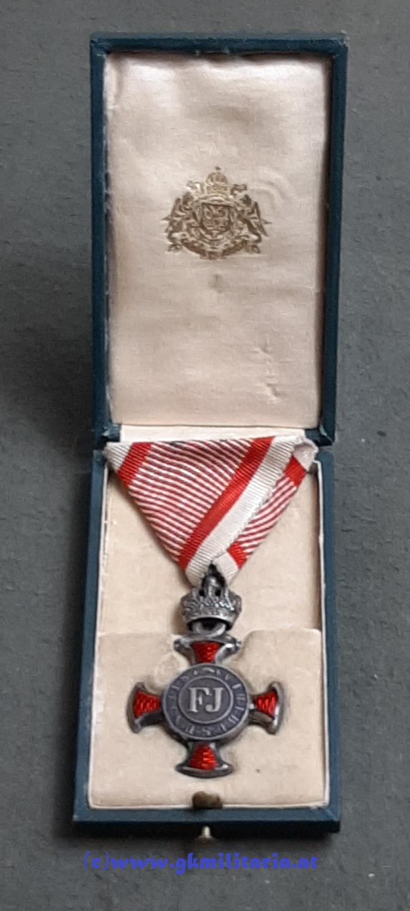 k.u.k. Silbernes Verdienstkreuz mit Krone - im "dunkelgrünen" Etui!