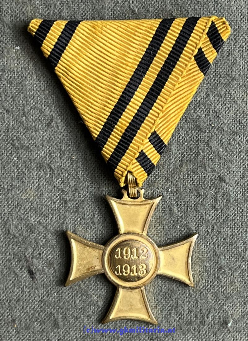k.u.k. Mobilisierungskreuz 1912/1913 - Variante für Offiziere! - vergoldet - Variante mit gravierten Zahlen - am originalem Band! - sehr guter Zustand!