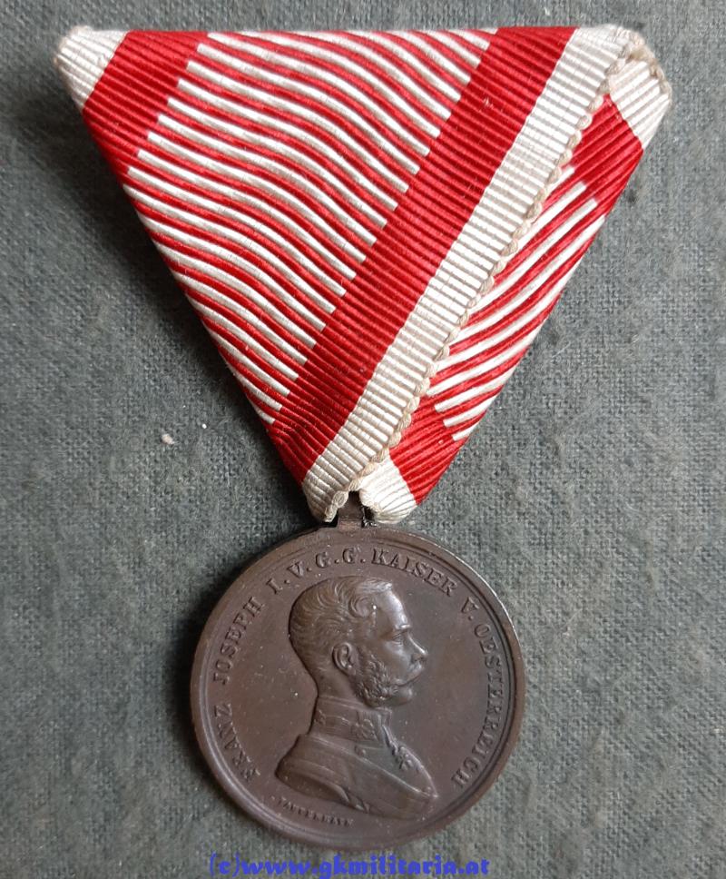 k.u.k. Bronzene Tapferkeitsmedaille Kaiser Franz Josef ! - Stempelschneider Tautenhayn - am oriignalem Band - sehr guter Zustand!