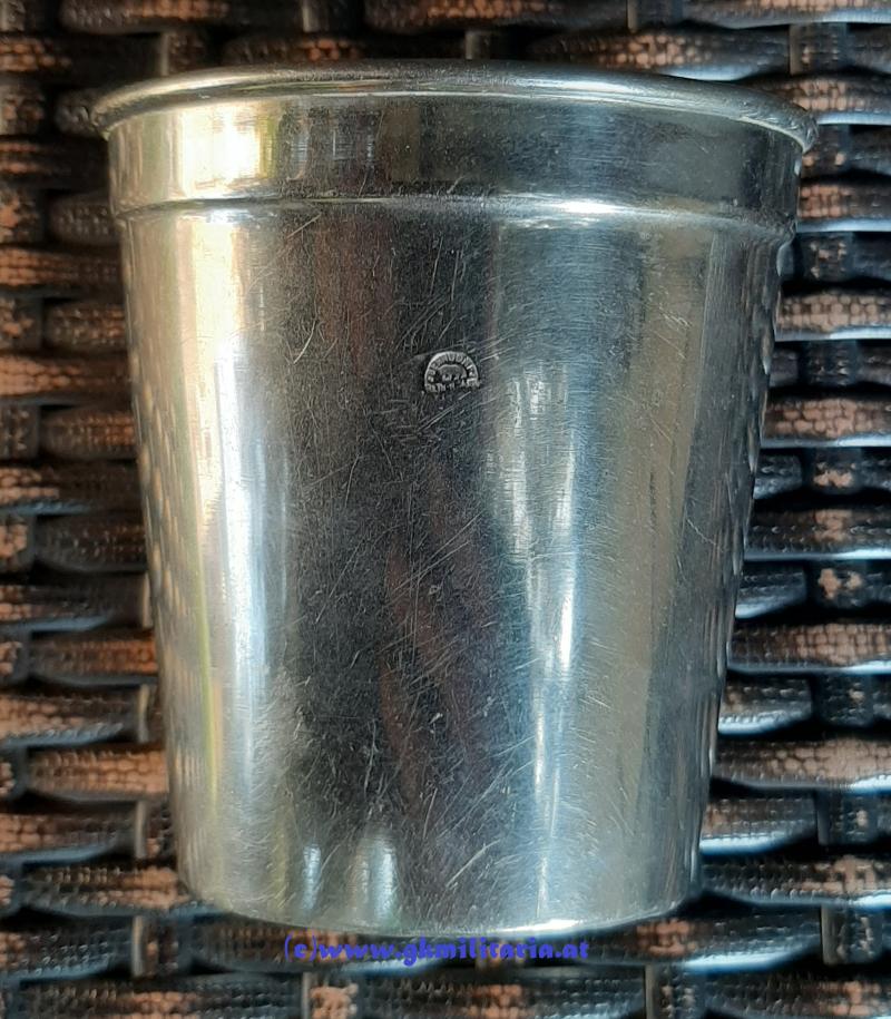 k.u.k. Trinkbecher für Offiziere - k.k. Landwehr! - Hersteller auf Rückseite Berndorf - Rein Nickel - mit Doppeladler und K.K.LW. auf Vorderseite für K.K. Landwehr - 8,8cm hoch - sehr guter Zustand!