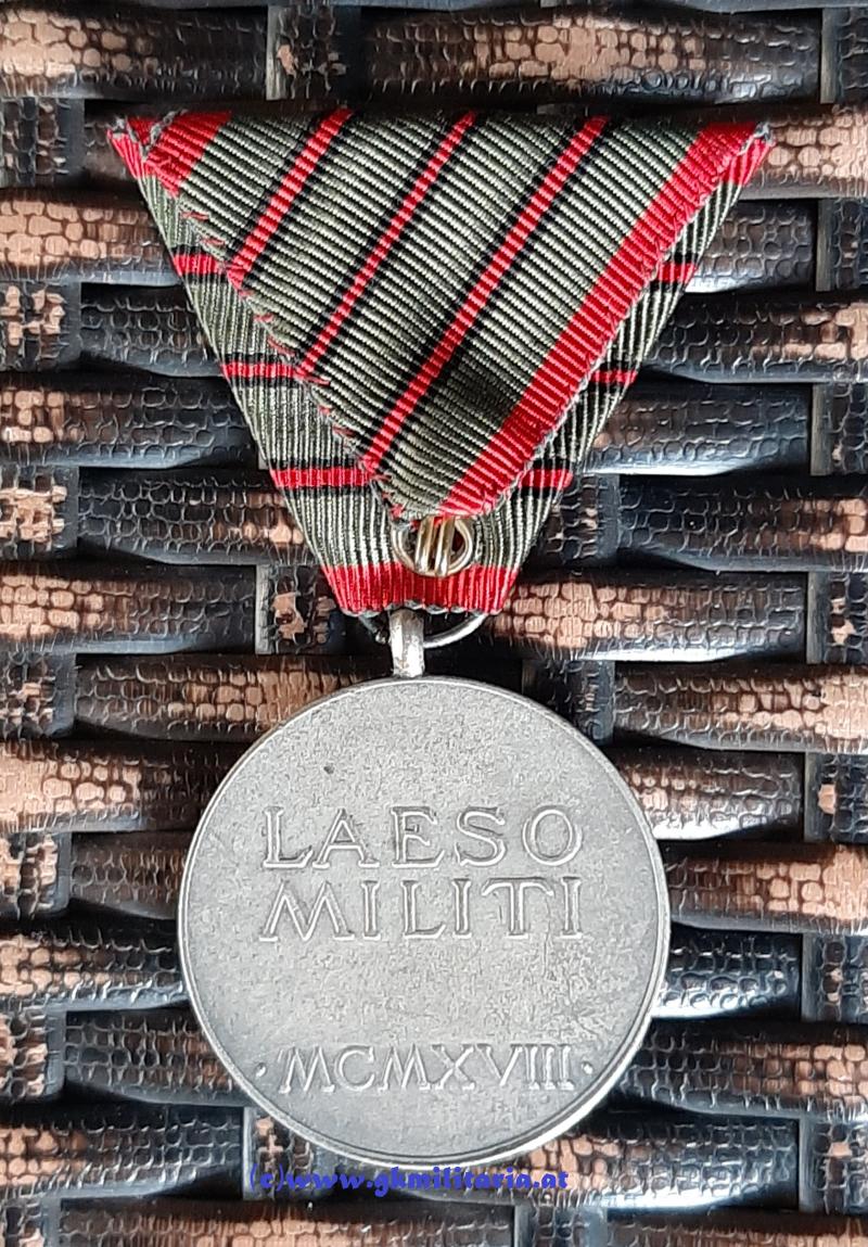 k.u.k. Verwundetenmedaille Kaiser Karl I. - 3-fache Verwundung! - Variante "BRONZE"! - am originalem Band mit 3 Streifen für 3-fache Verwundung - sehr guter Zustand!