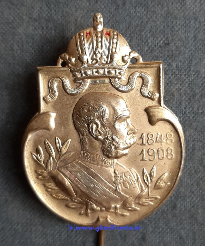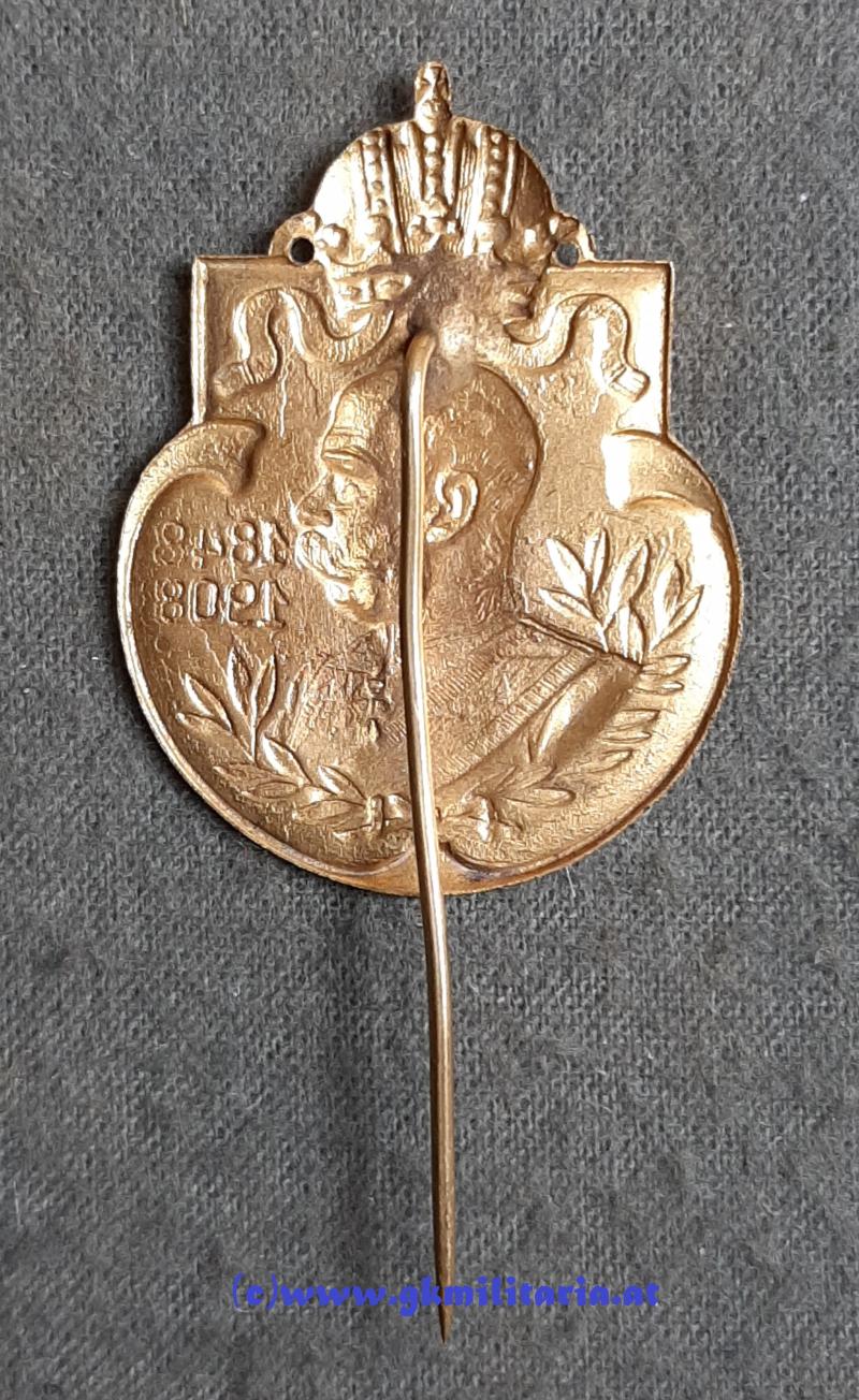großes k.u.k. Abzeichen Kaiser Franz Joseph I. - 60-jähriges Regierungsjubiläum! - 1848-1908 - 4,5cm x 3,5cm ohne Nadel - vergoldet - originale Nadel - sehr guter Zustand!