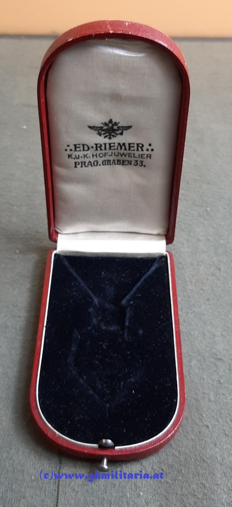 k.u.k. Etui für Franz Joseph-Orden Ritterkreuz - seltene Variante RIEMER, PRAG!!