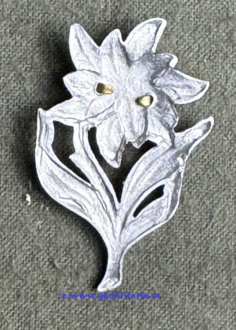 k.u.k. Landwehr Gebirgsgruppen - Edelweiss! - Alu - zweiteilig gefertigt - zum Annähen - sehr guter Zustand!