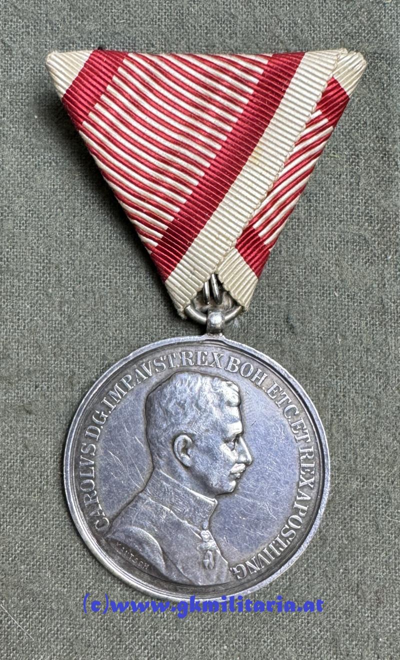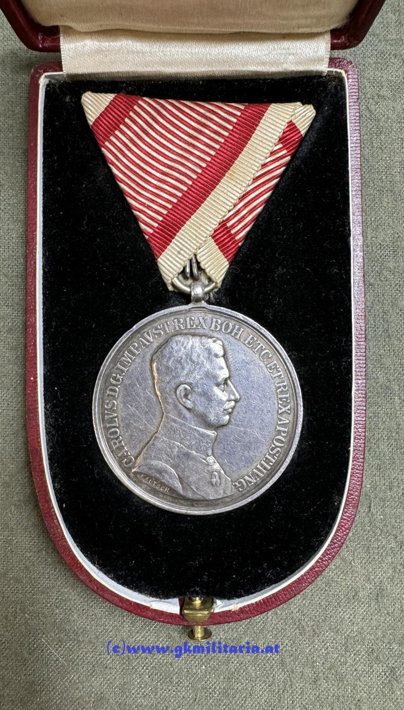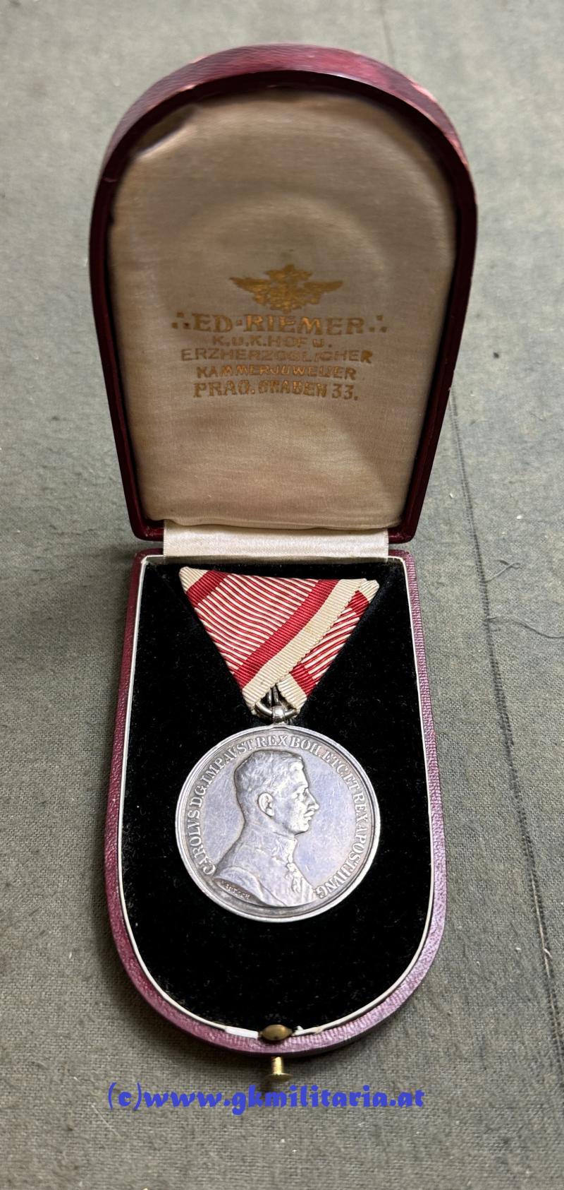 k.u.k. Silberne Tapferkeitsmedaille Kaiser Karl 1. Klasse - im originalem Etui Fa. RIEMER, PRAG!!! - Sehr selten!!