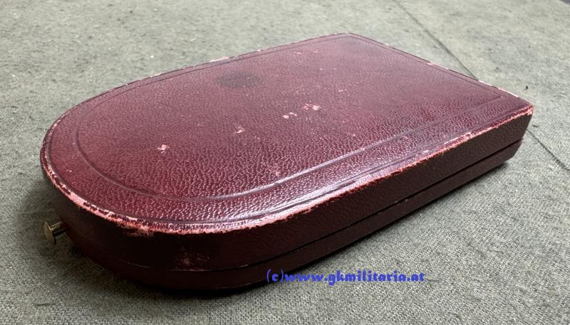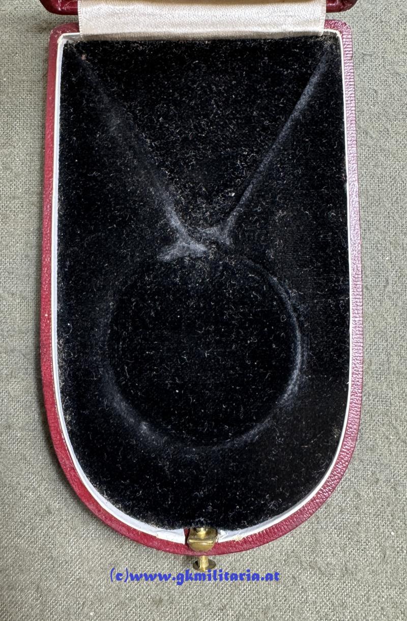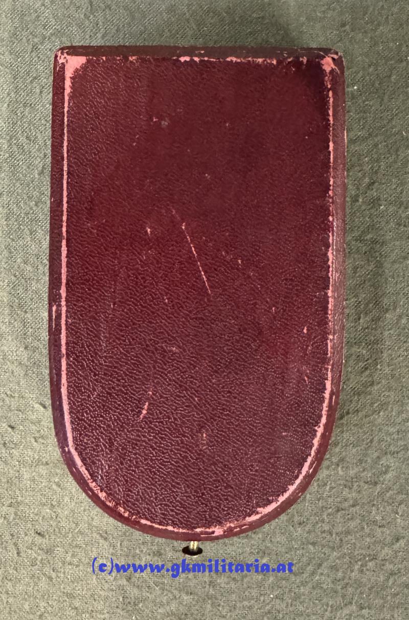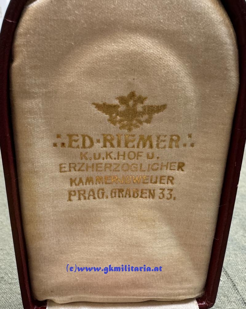 k.u.k. Silberne Tapferkeitsmedaille Kaiser Karl 1. Klasse - im originalem Etui Fa. RIEMER, PRAG!!! - Sehr selten!! - Medaille Silber - im Rand "A" punziert für HMA Wien - am originalem Band - im sehr seltenen originalem weinroten Etui der Fa. Ed. Riemer, Prag (Etui Rand etwas berieben) - außen wie es bei Etuis der Fa. Riemer üblich ist kein Aufdruck - innen im Deckel Hersteller ED. RIEMER, K.u.K. Hof- & Erzherzöglicher Kammerjuwelier PRAG, GRABEN 33 - Sehr seltenens Tapferkeitsmedaillen-Set im sehr gutem gebrauchtem Zustand! - Etuis für Tapferkeitsmedaillen sind eine echte RARITÄT!