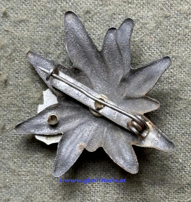 k.u.k. Kappenabzeichen Edelweiß - "Doppeladler" - Gebirgstruppe! - zweiteilig gefertigt - aufgesetztes Wappen Doppeladler - teilweise emailliert - originales Nadelsystem - sehr guter Zustand!