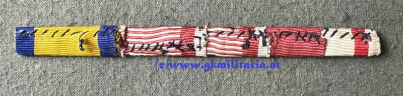 6-teilige Bandspange - Orden der Eiserne Krone !! - bestehend aus: Orden der Eisernen Krone - 2x Tapferkeitsband - Signum Memorae - Jubiläumskreuz - sehr guter Zustand!