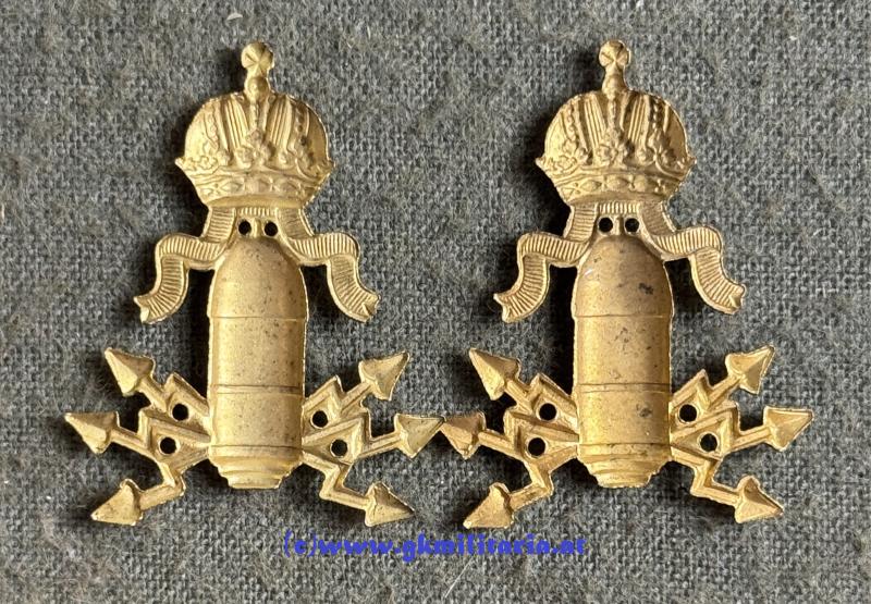 Kragenspiegelauflagen für Offiziere: k.u.k. Minenwerfer!! - vergoldet - hohl geprägt - zum Annähen - sehr guter Zustand!
