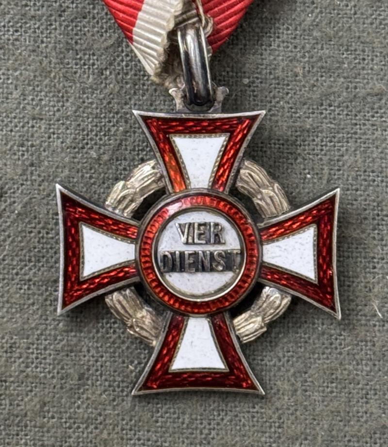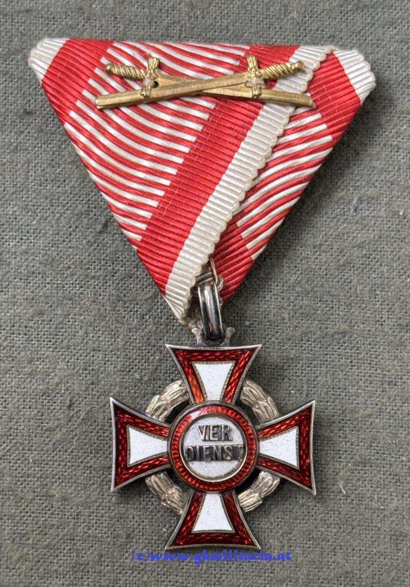 k.u.k. Militärverdienstkreuz 3. Klasse mit KD und Schwertern! - Silber nicht punziert - emailliert - am originalem Band mit Schwertern - TOP-Zustand!