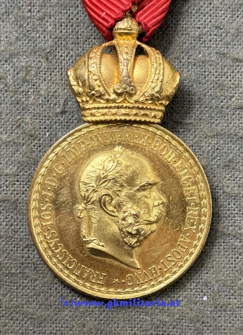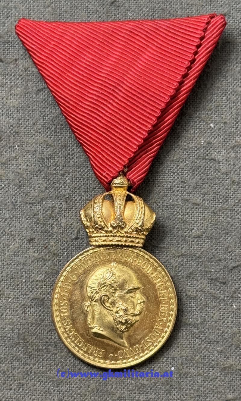 k.u.k. Bronzene Militärverdienstmedaille Kaiser Franz Joseph I.!! - Bronze feuervergoldet - fast stempelfrisch - am originalem zivilen roten Band - MINT-Zustand!