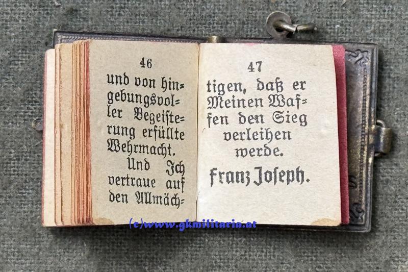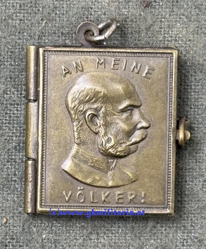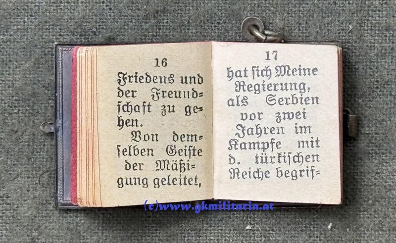 k.u.k. Miniatur-Manifest des Kaiser Franz Josef I. - 1914 !! - "An meine Völker! ...." - Variante Buntmetall - 47 Seiten - Format: 2,4cm x 2,2cm - sehr guter Zustand!