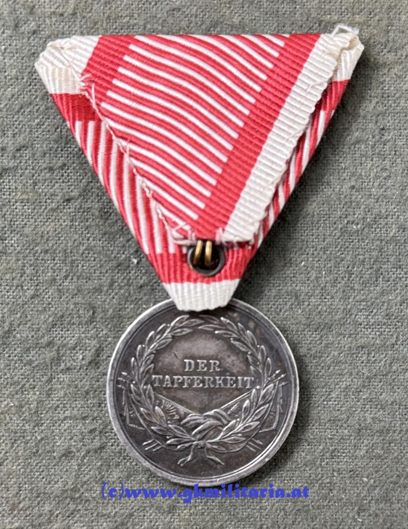 k.u.k. Silberne Tapferkeitsmedaille 2. Klasse Kaiser Franz Joseph I.!! - Silber nicht punziert - Stempelschneider Tautenhayn - am originalem Band - sehr guter Zustand!