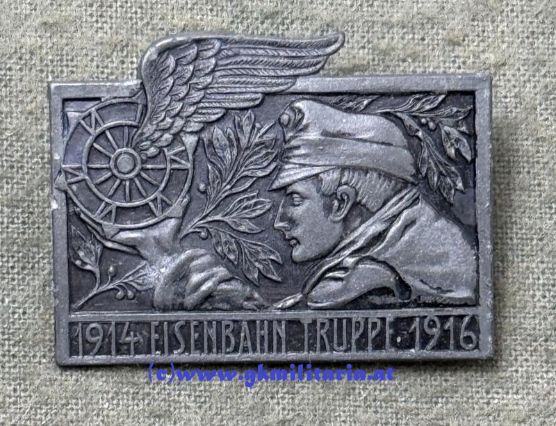 k.u.k. Kappenabzeichen "Eisenbahn-Truppe 1914 - 1916" - Kriegsmetall - originales Nadelsystem - TOP-Zustand!