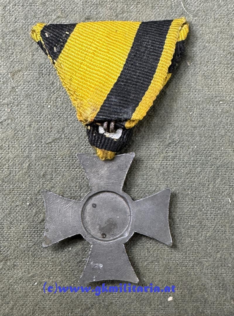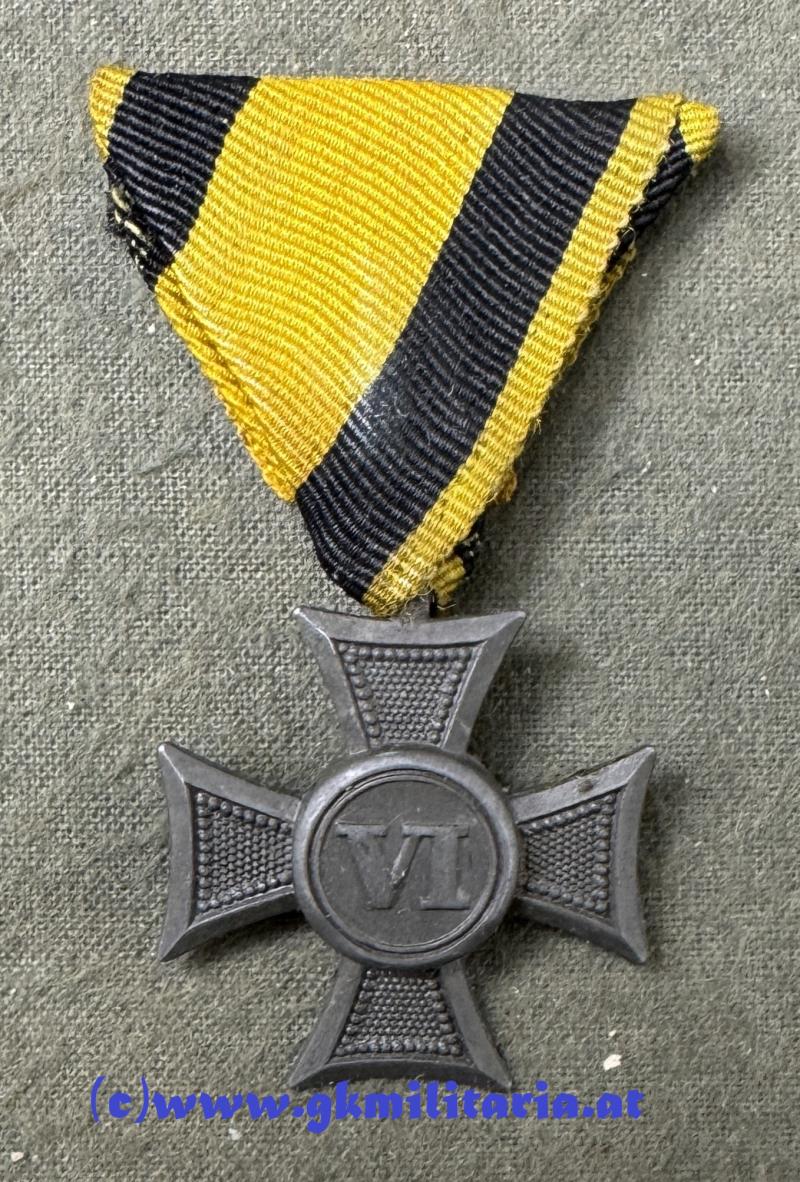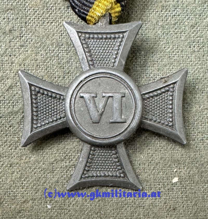 k.u.k. Militärdienstzeichen Mannschaft/Uoffz. VI Jahre! - Kriegsmetall - Variante einteilig gefertigt und halbhohl geprägt - am Originalem Dreiecksband! - sehr guter Zustand!