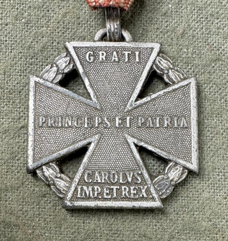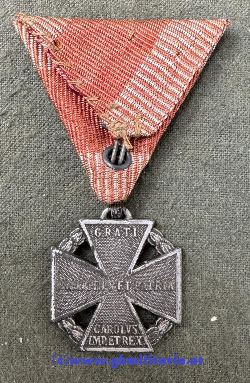 k.u.k. Karl Truppenkreuz - ohne Herstellerstempel - Kriegsmetall - am originalem Band - sehr guter Zustand!
