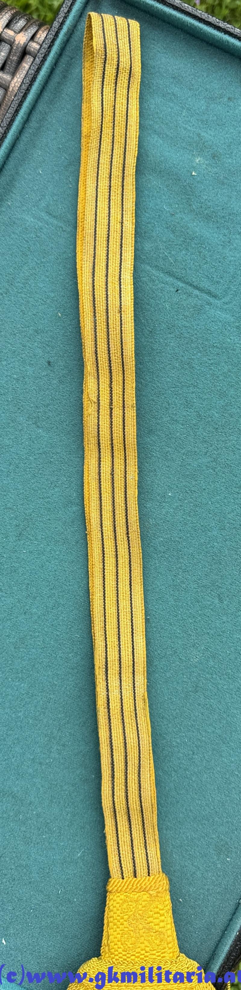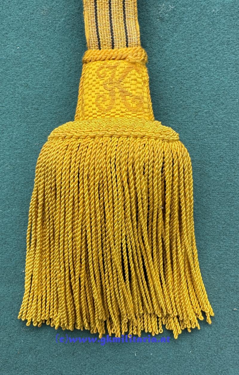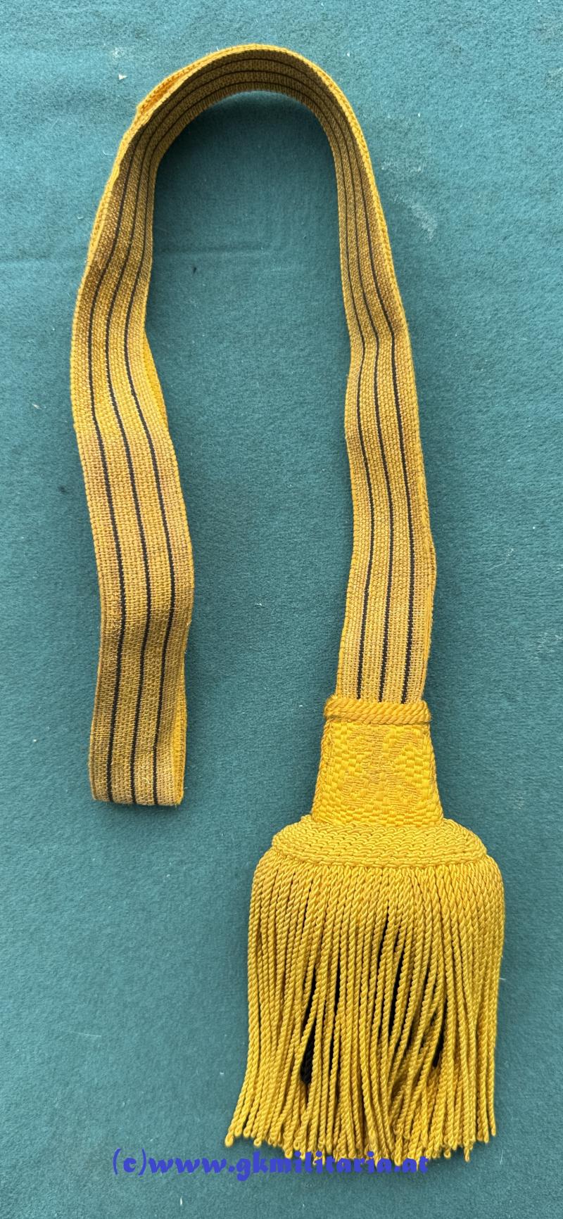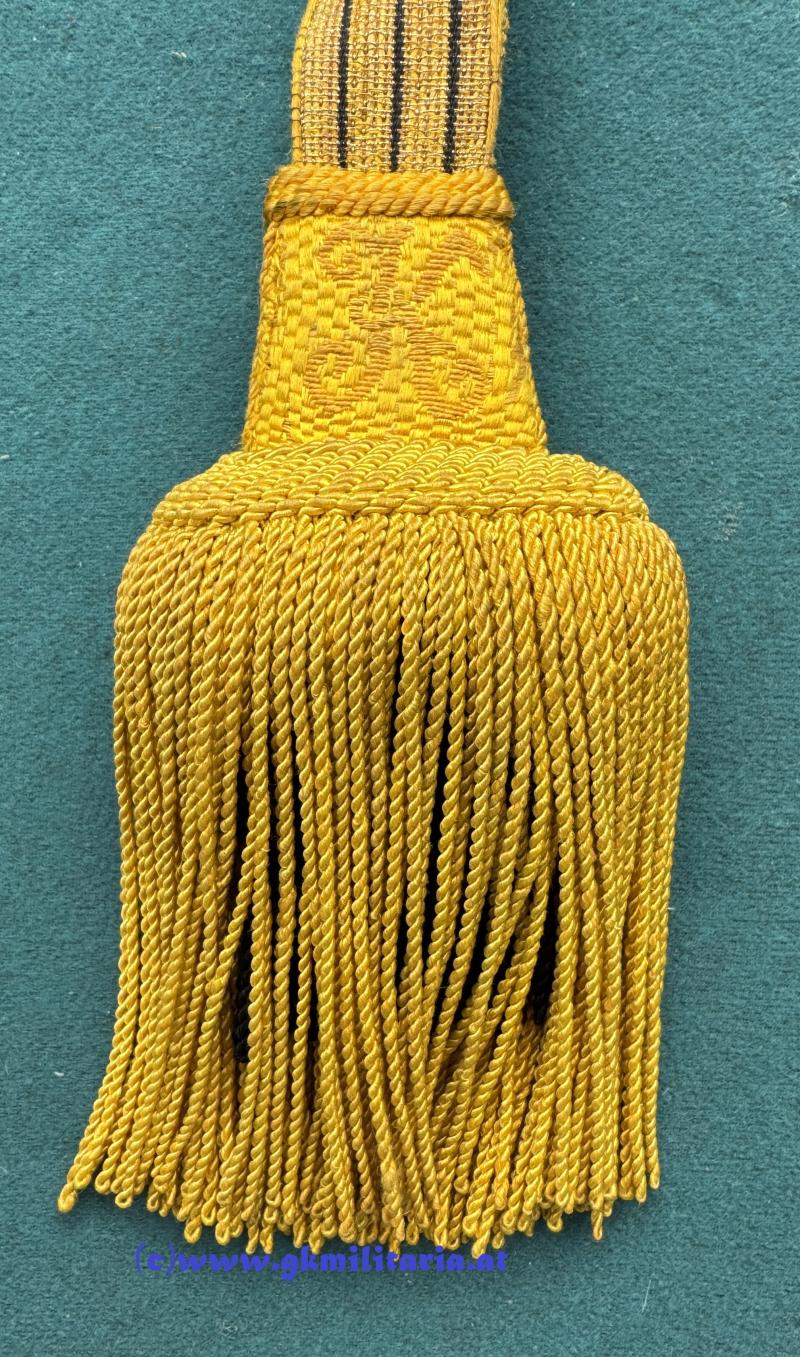 k.u.k. Portepee Säbel Kaiser Karl I. ! - für höhere Unteroffiziere - Band mit 3 schwarzen Durchzügen - beidseitig aller höchster Namenszug "K" für Kaiser Karl I. - Fransen aus kaisergelber und schwarzer Wolle - sehr guter Zustand!