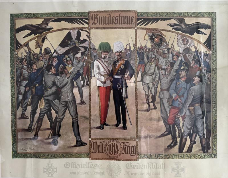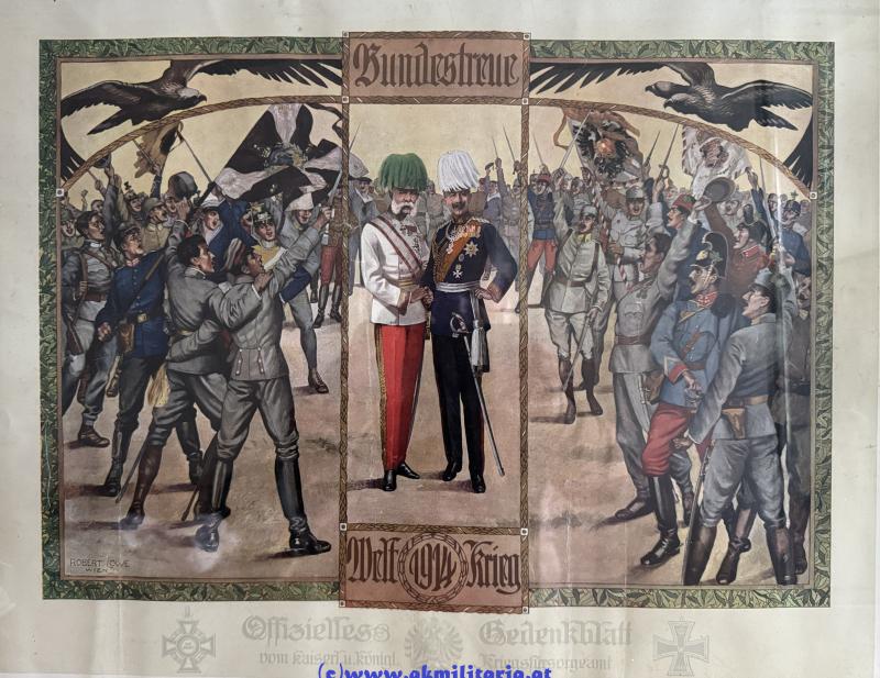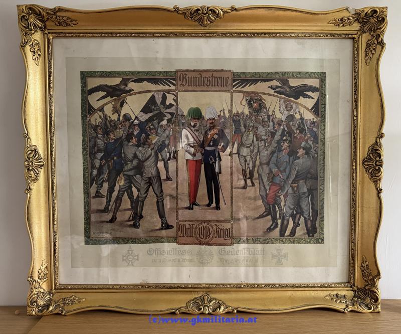 "Bundestreue Weltkrieg 1914" - Offizielles Gedenkblatt vom k.u.k. Kriegsfürsorgeamt! - gerahmt - Rahmen 68x58cm (1 Beschädigung) - guter Zustand!