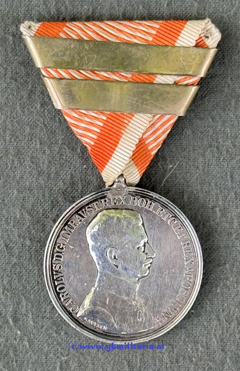 k.u.k. Silberne Tapferkeitsmedaille 1. Klasse Kaiser Karl I. m. 2-facher WH-Spange! - SILBER!