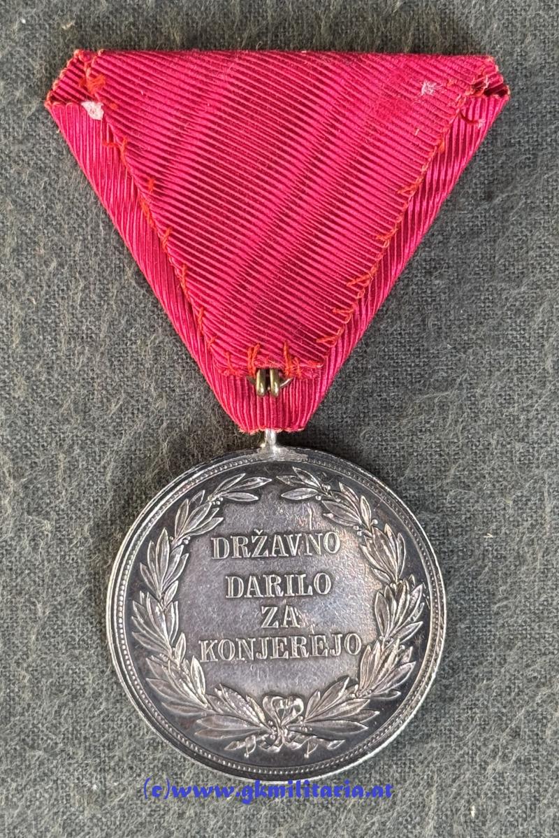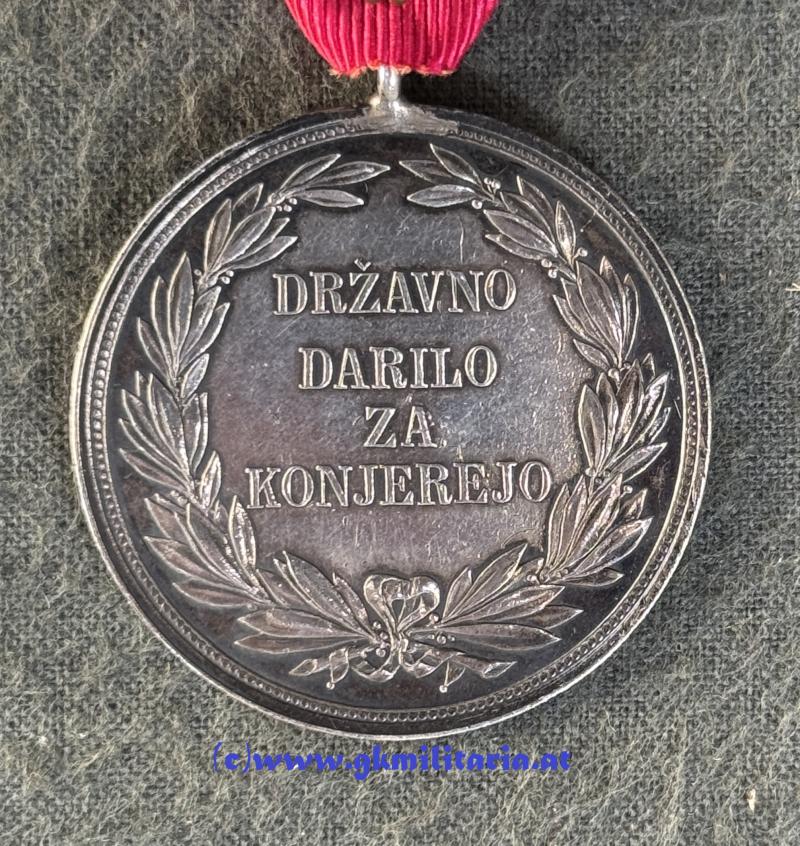 k.u.k. Staatspreis für Pferdezucht!! - Variante "SLOWENISCH" - Selten! - Silber "A" punziert im Rand für Kontrollpunze HMA Wien und Herstellerpunze - Stempelschneider Tautenhayn - Modell in kroatischer Schrift - selten! - am originalem frühen zivilen Band - sehr guter Zustand!