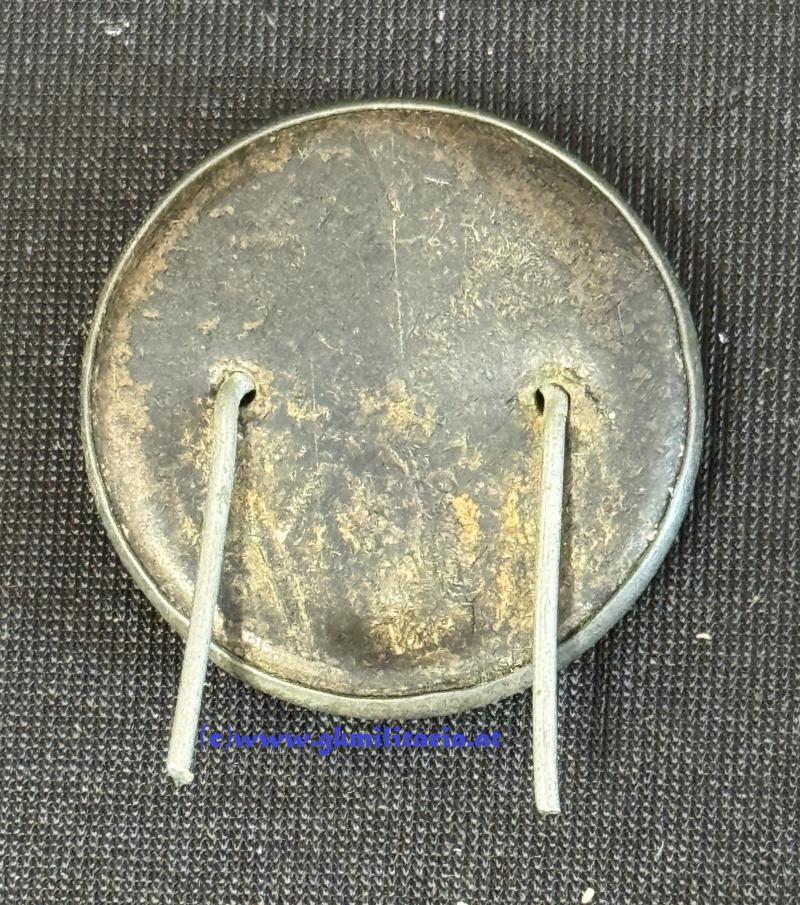 k.u.k. Kappen-Kokarde Kaiser Karl ! - feldgrau lackiert - schwarz hinterlegt - mit 2 originalen Splinten - stammt aus einen größeren Hortfund - guter Zustand!