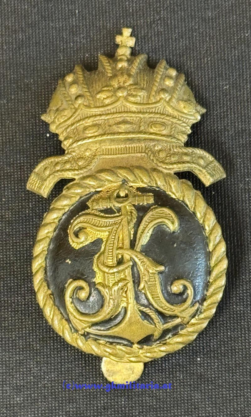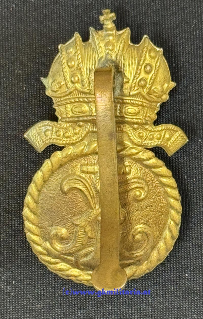 k.u.k. Kriegsmarine Kappenkokarde "KARL" für Unteroffiziere! - vergoldet und schwarz lackiert - originale Trageklammer auf der Rückseite - sehr guter Zustand!!