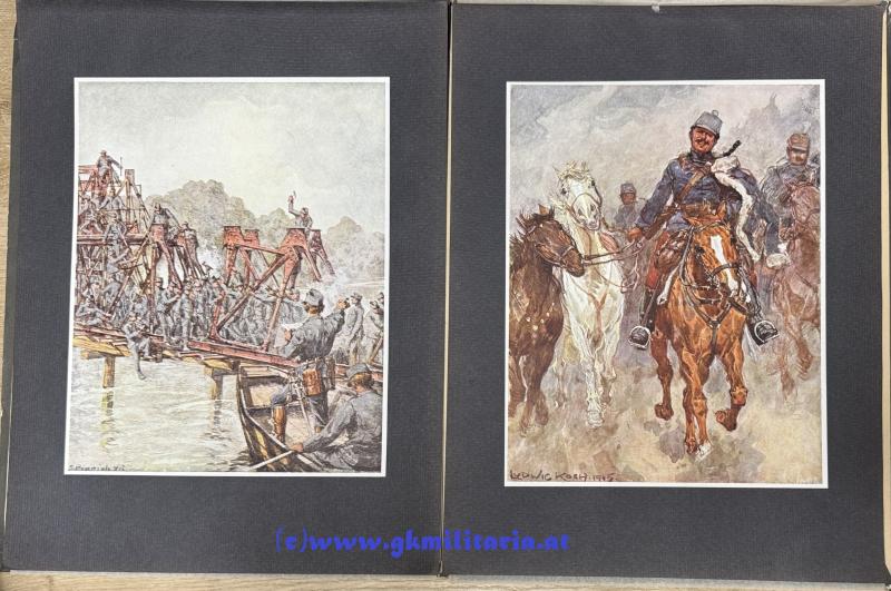 Habsburgs Mauern Künstlermappe der "Muskete" - 12 Kunstblätter - Originale Flügelmappe mit Vorwort und Einlageblatt von Mirko Jelusch - Mappe ist vollständig = alle 12 Farbdrucke mit Abdeckseidenpapier und Titel nach originalen Aquarellen von Harry Heusser - Carl Josef - Ludwig Koch - Carl Pippich - Hans Printz und Robert Wosak - Format 30,5 x 39,5 cm - Blätter im sehr gutem Zustand!