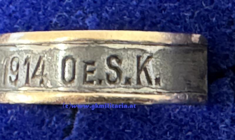 k.u.k. Ring "Gold gab ich für Eisen - 1914" ! - GOLD! - mit Gold unterlegt - vom OE.S.K. = Österr. Schwarzes Kreuz - Innendurchmesser ca. 20mm - sehr guter Zustand!