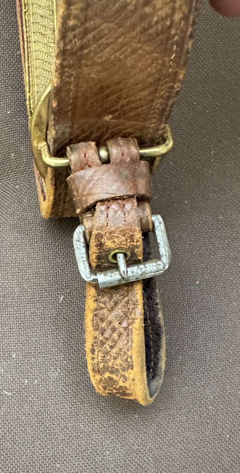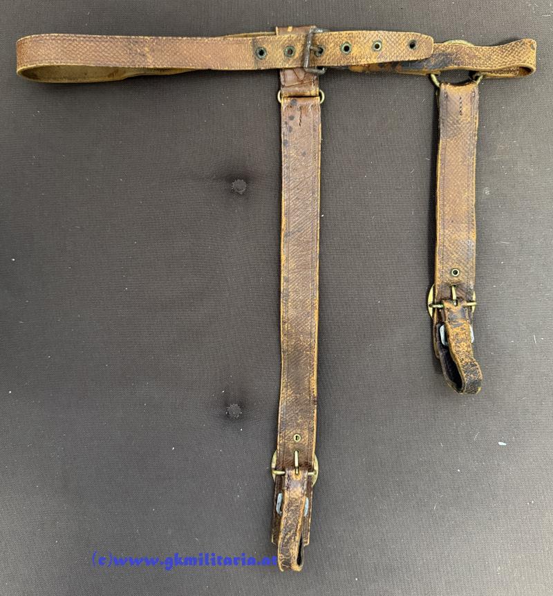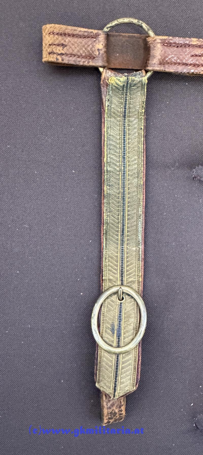k.u.k. Gehänge für Säbel Offiziere!! - Dienstgehänge mit braunem Leder auf der Rückseite - Stulpen aus braunem Leder mit aufgenähten Goldborten für Offiziere - Gürtel mit Verstellösen (Gürtel mit Lederstück ausgebessert) - gebrauchter Zustand!