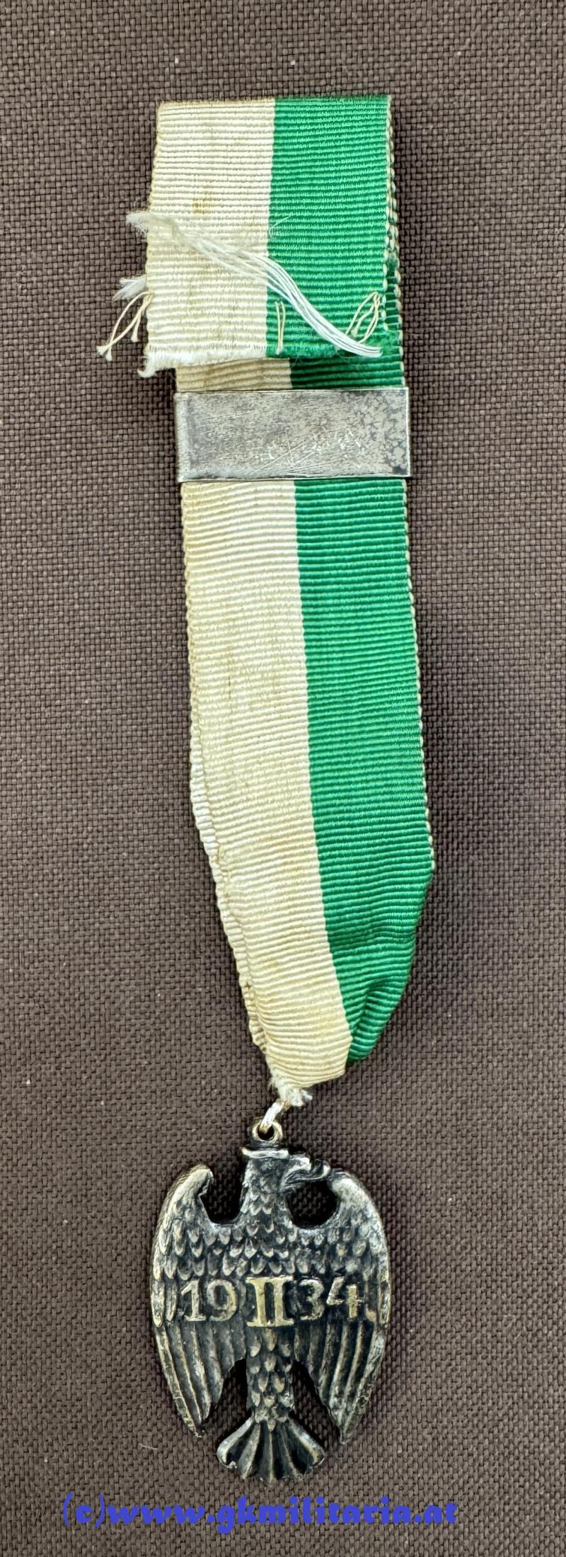 Heimwehrehrenzeichen 1934 mit Julispange - "Starhembergadler" !! - Tombak versilbert - Hersteller Gnad Wien - Adler am langen originalem grün/weißem Band mit "Julispange" - sehr guter Zustand!